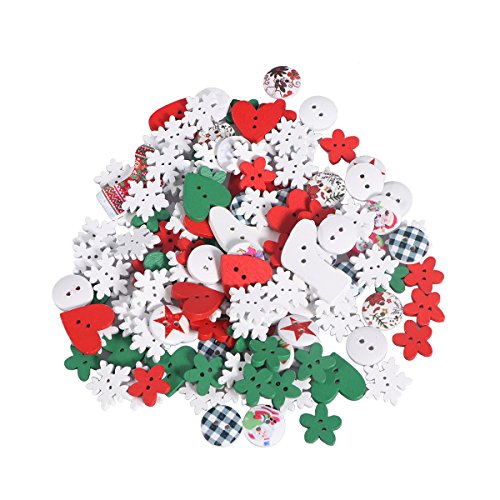 ROSENICE Bottoni di Legno Bottoni Misti a Forma Rotondi Cuori e Fiocchi di Neve Colorati per Fai da Te (Rosso e Verde)
