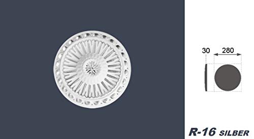 1 Rosette Parete Rosone a Rosetta Decorativa Arredamento Polistirolo Ø28cm, R-16 Argento