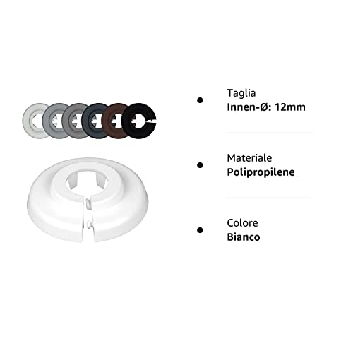 20 rosette per tubo di riscaldamento singolo, diverse misure, copertura per tubi, rosette di copertura, riscaldamento, rivestimento, rosette per radiatore, in polipropilene bianco, 12 mm