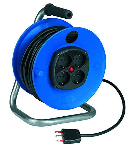 Rosi Cr14504Bn Avvolgicavo con 2 Prese e 2 Schuko 10/16A, Cavo da 3x1.5mm, 50 m, Blu/Nero, 50m