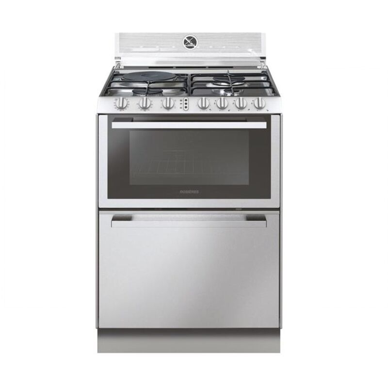 Cucina combinata lavastoviglie Rosières TR631NOX/1 composta da: 1 lavastoviglie 6 coperti con 5 programmi tra cui Hygiene+ 75°C, Eco 45°C e Rapid 32 min, 1 piano cottura 3 fuochi a gas + 1 piastra elettrica, e 1 forno elettrico multifunzione con 4 modalità di cottura tra cui Stirred Heat e TurboGril. La lavastoviglie e il forno non possono funzionare contemporaneamente. Tipo di prodotto: Lavastoviglie e piano cottura combinati. Numero di coperti: 6. Livello sonoro: 56 dB. Consumo di acqua: 8 L/ciclo di riferimento. Aprire porta automatica Fine ciclo: no. Consumo elettrico: 61 kWh / 100 cicli. Cassetto per le posate: no. Materiale del serbatoio: acciaio inossidabile. Indicatore di risciacquo: no. Indicatore sale: no. Partenza ritardata: 3-6-9 ore. Visualizzazione del tempo rimanente: no. Connesso: no. Il prodotto +: 3 in 1: Lavastoviglie/Forno/Piano cottura. Lavastoviglie: Numero di programmi: 5. Il segnale acustico di fine ciclo può essere disattivato. Sicurezza antitrabocco.