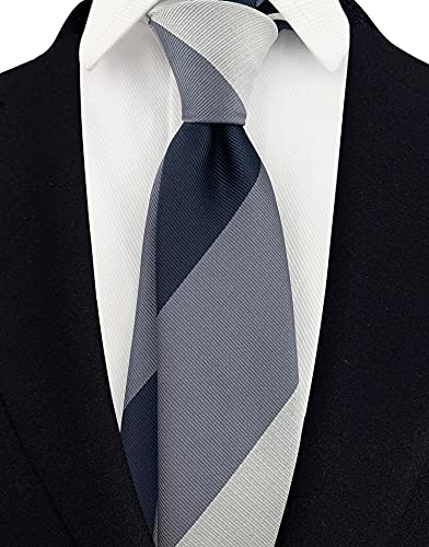 Rosiika Cravatte a righe larghe da uomo modello jacquard formale business designer college cravatte, Navy Grigio Argento, Taglia unica