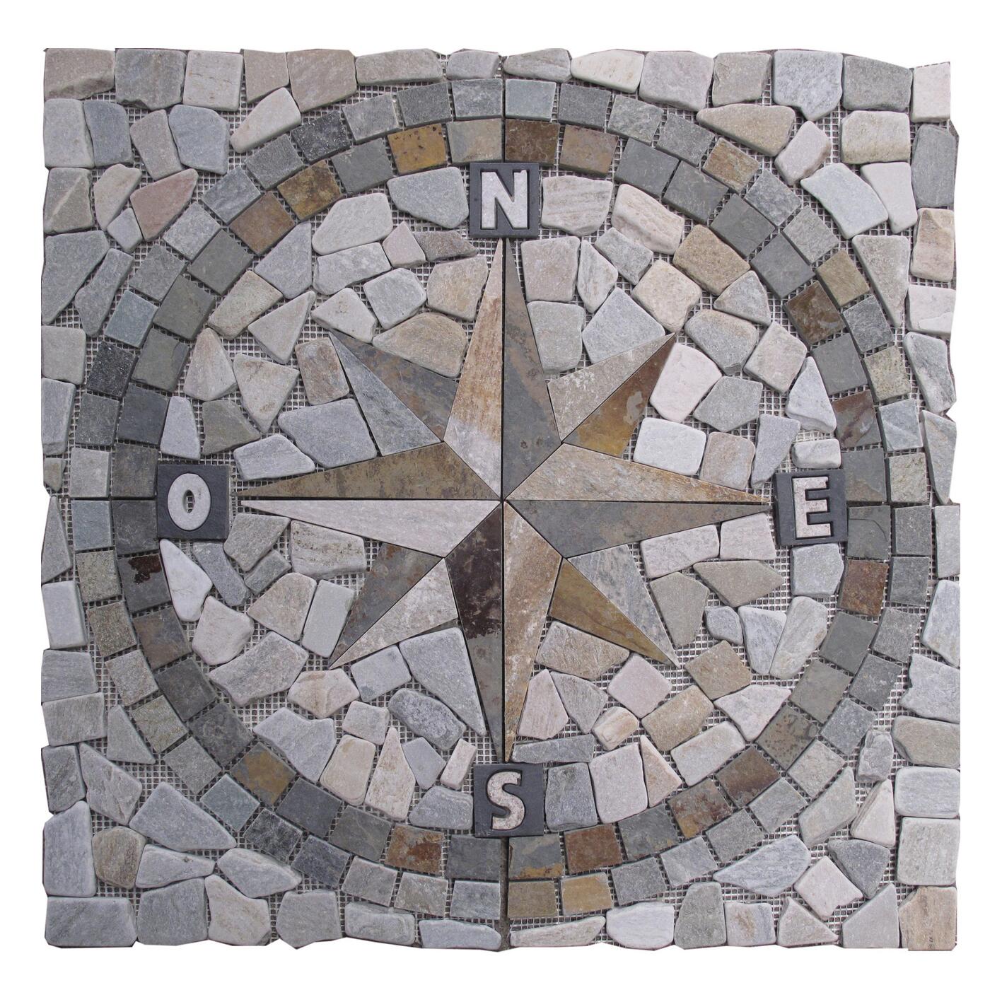 Rosone in pietra naturale, 60 x 60 cm spessore 10 mm, finitura burattato opaco con motivo ornamentale, bordo irregolare.. Ideale per uso interno ed esterno. Ideale per decorare pavimenti e rivestimenti. Possono variare i colori e le tonalità grazie alla naturale bellezza della pietra che la rende unica nel suo genere