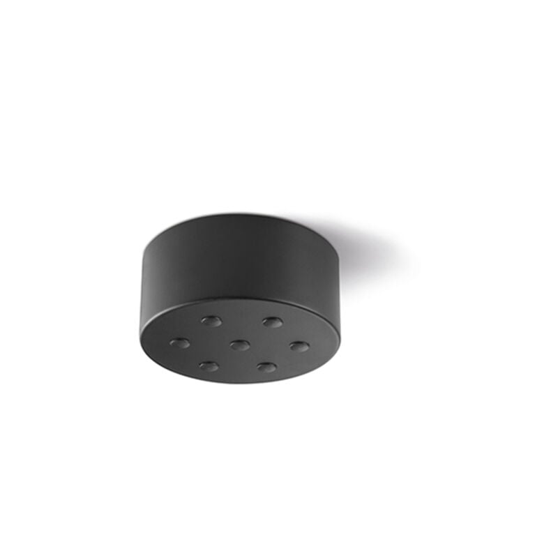 Collezione Rain COMPONI LA TUA LUCE Rosone multicavo in metallo verniciato a polvere (7 fori) nero opaco D.12 x H.5 cm. COMPONI la tua sospensione con RAIN! Diventerà così un pezzo unico da appendere dove vuoi. Selezionando tra l'ampia gamma di vetri e accessori disponibili potrai riempire i tuoi ambienti di meraviglia.