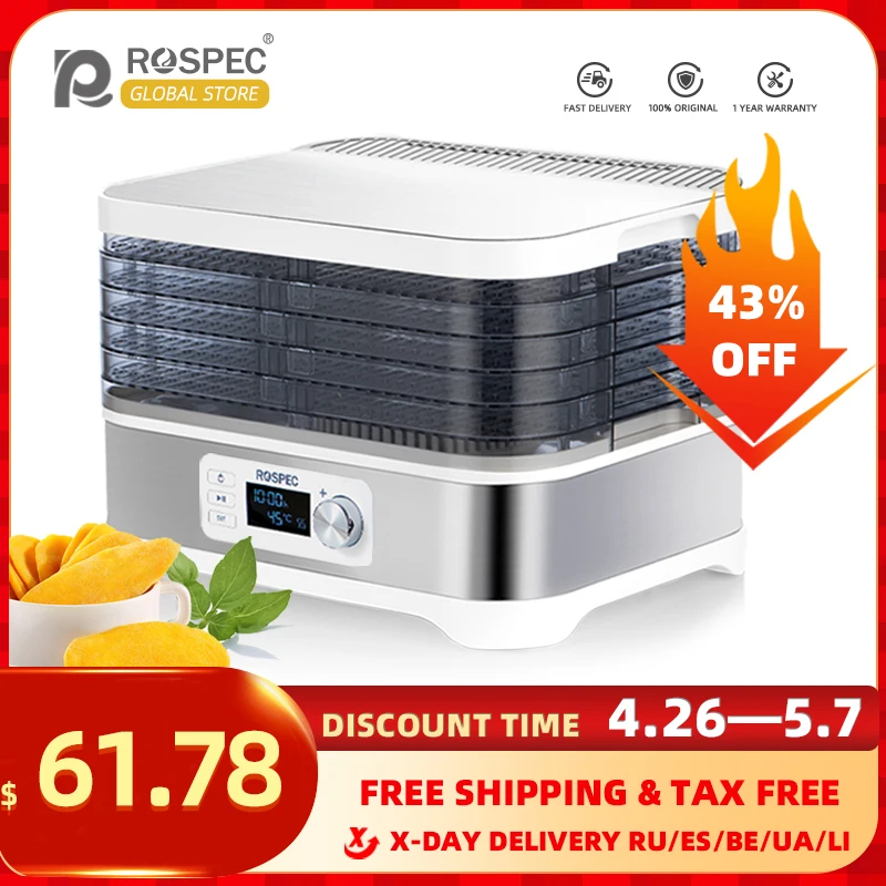 ROSPEC Food Dehydrator Fruits Meat Dryers Deshidratador Stainless Steel Fish Drying Machine Electric Air Dryer for Fruit