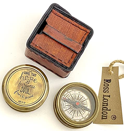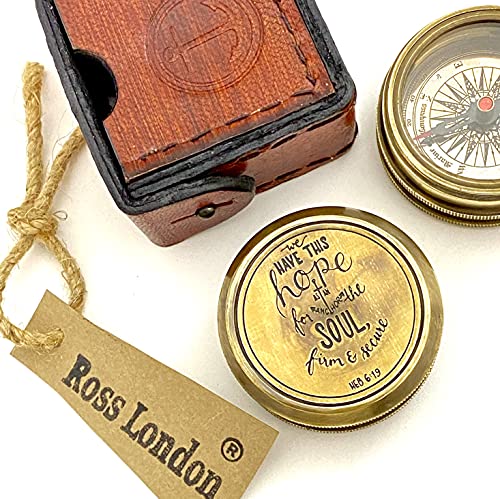 Ross London - Bussola tascabile in ottone con scatola in pelle, con scritta "We Have This Hope AS a Anchor for The Soul" HEB 6:19 - Bussola d'avventura in stile vintage, bussola regalo