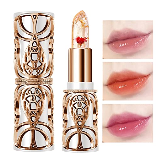 Rossetto Crystal Flower Jelly | Flower Jelly Lipstick cambiamento di temperatura, rossetto a lunga durata con fiore all'interno del balsamo per labbra Magic Color Change Lipgloss Jingling