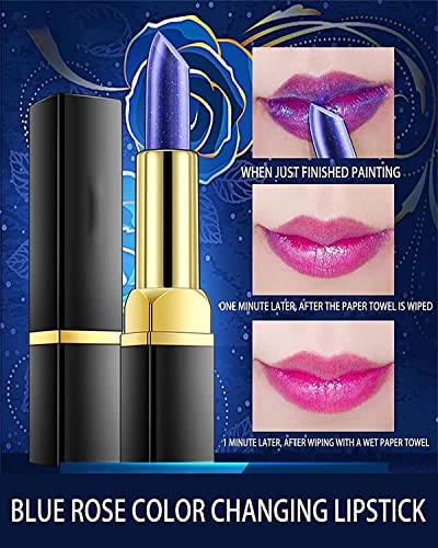 Rossetto idratante a lunga durata, magico scolorimento blu-rosa che cambia temperatura rossetto con flash impermeabile, a lunga durata, non sbiadisce, antiaderente (2 pezzi)