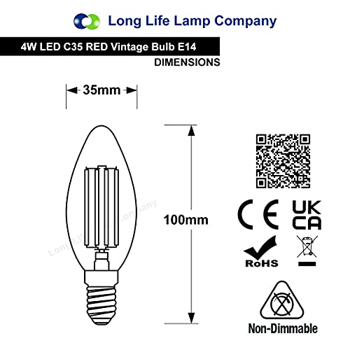 Confezione da 2 lampadine LED Filament candela dando di colore rosso fuoco Glow effetto in vetro trasparente