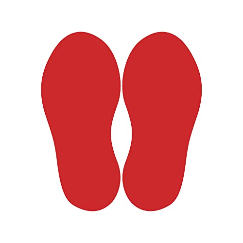 Rosso - 10 pezzi adesivi per pavimenti, coppia di piedi (totale 20 adesivi) - Dimensioni del piede 250 x 100 mm) per marcatura del pavimento/qualità industriale per negozi, ristorante