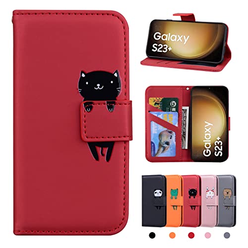 Rostsant Custodia Samsung Galaxy S23+ Cover in Pelle PU Samsung S23 Plus 5G Portafoglio Flip Custodia a Libro Cover Per Samsung Galaxy S23+ 5G - Gatto Rosso