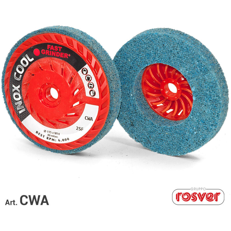 Dischi per finitura attacco M14 - Rosver - CWA 125xM14 - Conf.5pz Dischi per finitura professionali con attacco M14, facili e veloci da montare, per dare all'inox un'ottima finitura. Le prese d'aria sul platorello favoriscono la dispersione del calore e l'allontanamento dal pezzo delle polveri. Ideale per rimuovere segni dei passaggi abrasivi precedenti, piccole ossidazioni e l'imbrunitura di saldatura. Si consiglia l'utilizzo a 5.000/6000 giri al minuto, per prevenire il surriscaldamento della superficie in lavorazione e permettere la piena sinergia di utilizzo con il platorello aerato. Adatti anche per alluminio. MISURA COLORE 2SSF 2SF 3SF 6SM 8AC 125x15 Blu - 19,77 21,29 - 125x15 Rosso - 21,98 125x15 Verde 19,18