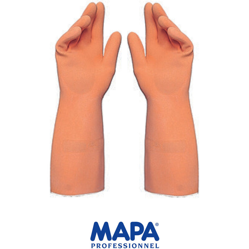 Guanti MAPA INDUSTRIAL ARANCIO taglia (10/7/8/9) Lattice naturale finitura zigrinata. Buone prestazioni meccaniche e di protezione chimica di lunga durata. Spessore 0,90 mm