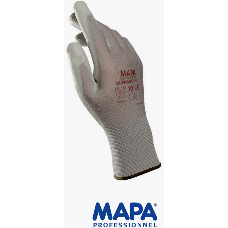Guanti MAPA ULTRANE BIANCO taglia (10/6/7/8/9) Poliuretano, supporto in poliammide, dorso e dita aerate. Passaggio della traspirazione garantito dalla struttura cellulare del poliuretano. Eccellente destrezza, precisione sulla punta delle dita, qualità eccellente del rivestimento.