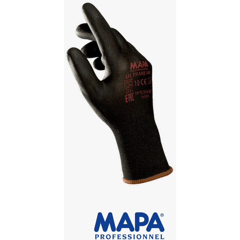 MAPA ULTRANE gloves BLACK size (10/11/6/7/8/9) Poliuretano, supporto in poliammide, dorso e dita aerate. Passaggio della traspirazione garantito dalla struttura cellulare del poliuretano. Eccellente destrezza grazie allo spessore ridotto del guanto.