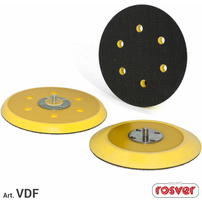 Platorello per Levigatrici Rotorbitali Rosver VDF D150 - Conf.1pz Platorelli forati per levigatrici e lucidatrici rotorbitali. MISURA FORI FORMA 150x10x5/16 Standard 150x10x5/16 6 Standard 150x12x5/16 Flessibile
