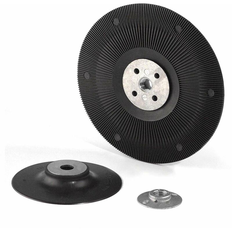 Platorello rigato per dischi fibrati, le scanalature favoriscono una dispersione del calore e un contatto più aggressivo con la superficie. Adatto per lavorazioni con pressioni forti sul disco, per utilizzo di grane grosse e per ridurre lo sviluppo del calore durante l'abrasione.