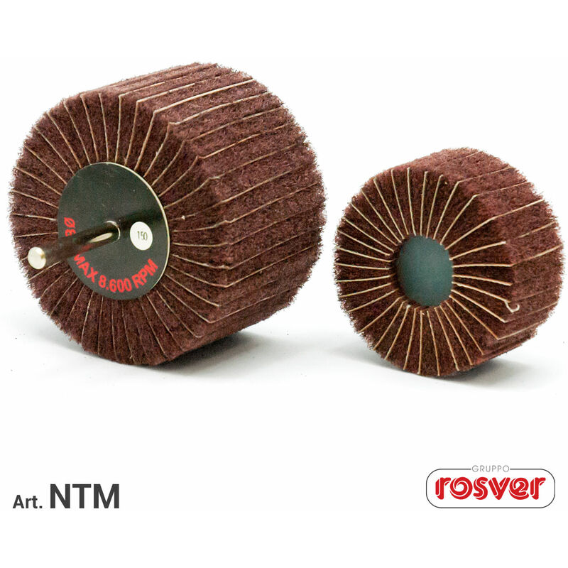 Ruote Abrasive Miste con Gambo - Rosver - NTM D.60x40x6 - Conf.10pz Ruote abrasive miste su gambo composte da lamelle di tela abrasiva alternate a lamelle di non tessuto abrasivo. La presenza della tela abrasiva rende questo prodotto più aggressivo rispetto alle ruote in solo non tessuto e consente di eliminare segni più marcati, quali graffi, piccole incrostazioni, ecc., dalla superficie del pezzo. - Smerigliatura dolce, senza vibrazioni e poco rumorosa. - Rimozione di graffi e finitura di acciaio. MISURA GAMBO 60 80 100 150 240 60x40 6 6,94 6,94 6,94 6,94 6,94