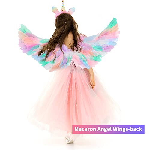 RosyFate Ali Unicorno Bambina, Rosa Ali da Angelo Ali Piuma con Cerchietto Unicorno Principessa Ali Unicorno Costumi Accessori per Bambino Ragazza Festa Carnevale Halloween Cosplay Party