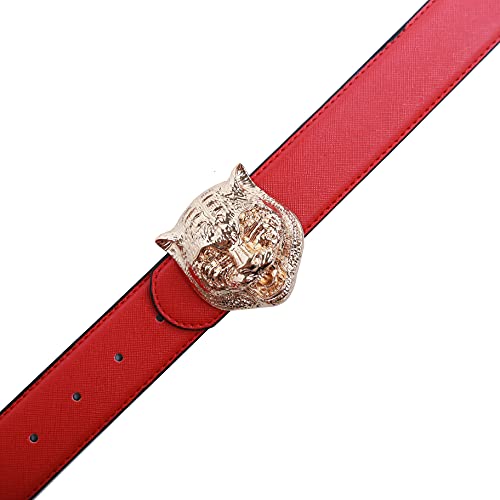RosyU Cintura da uomo in pelle bovina con design con fibbia grande tigre di lusso (Red Gold, 105cm/41.3inch(32-36))