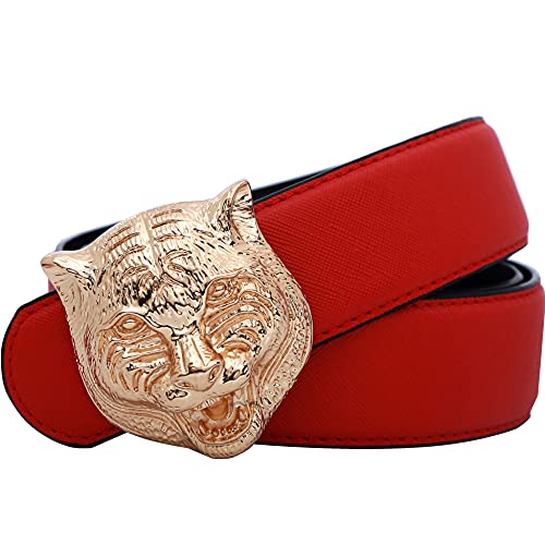 RosyU Cintura da uomo in pelle bovina con design con fibbia grande tigre di lusso (Red Gold, 110cm/43.3inch(37-39))