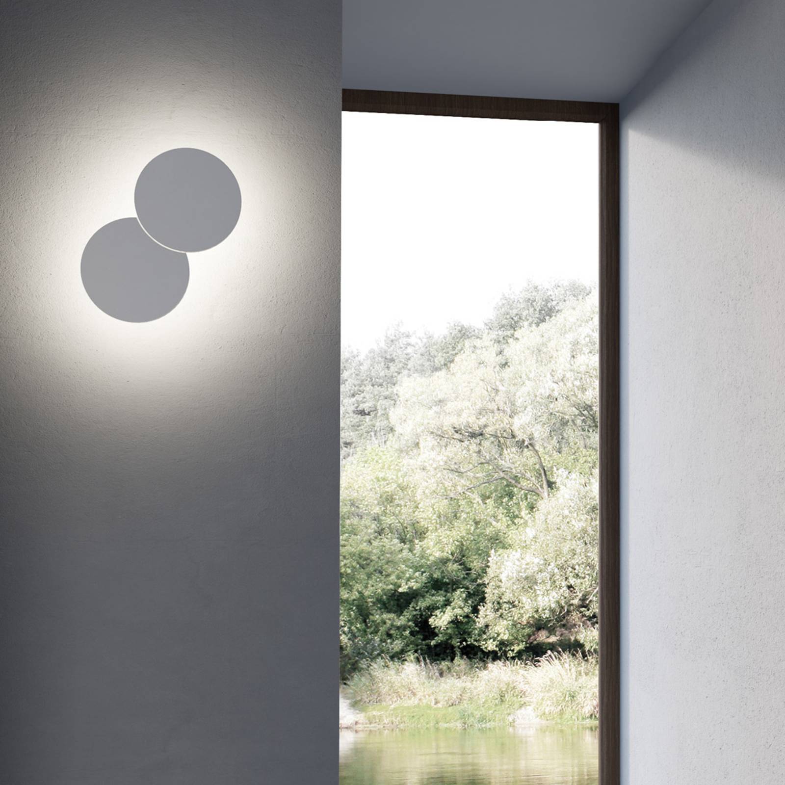 Lampada da parete di design a LED Collide con coppia di dischi Collide consiste di due dischi sovrapposti che danno l'impressione di una collisione. In questo modo il designer Paolo Dell'Elce crea un apparecchio d'illuminazione interessante, dall'aspetto moderno e insolito, dalle forme essenziali e minimaliste. Collide è una scelta di successo per l'illuminazione ambientale in aree abitative e ricreative moderne e di alto livello. La luce bianca calda dei LED sul pannello posteriore entra indirettamente nella stanza attraverso la parete. L'ulteriore flessibilità grazie alla possibilità di montaggio a soffitto completa Collide.