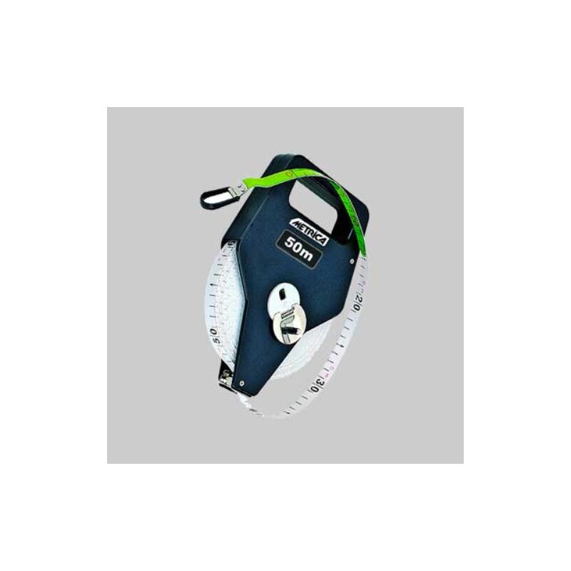 Custodia in ABS resistente agli urti con manovella in metallo. Nastro in fibra di vetro, larghezza mm.16. Rotella con impugnatura metrica 50 mt METRICA Rotelle e misuratori stradali