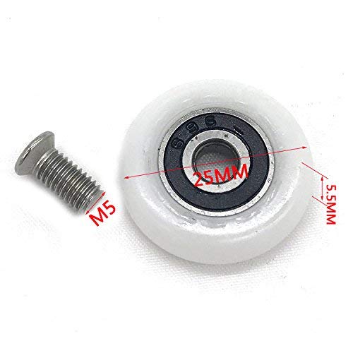 Dimensioni approssimative delle rotelle: 25 mm di diametro x 5,5 mm di spessore. Filettatura delle viti: M5.