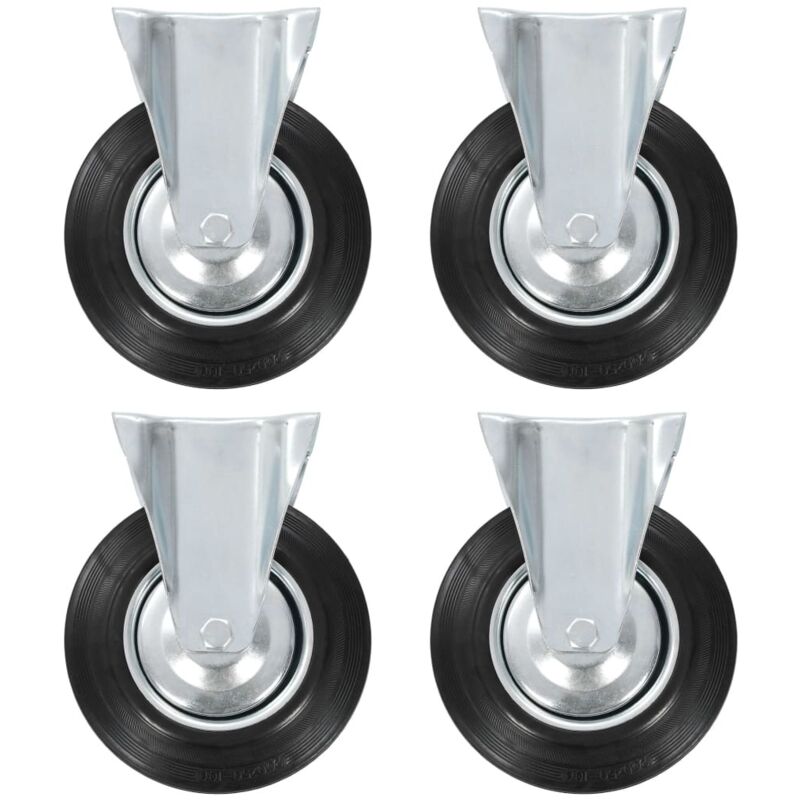 Questo set, composto da 4 rotelle fisse, costituisce l'accessorio perfetto per attrezzature e mobili di piccole dimensioni come banchi da lavoro, carrelli, tavolini da caffè, piantane, scaffali, carrelli della spesa, etc. Le ruote sono realizzate in gomma, un materiale che si distingue per una buona resistenza agli urti e alle vibrazioni e che consente alle ruote di girare in modo fluido e silenzioso. La loro superficie morbida, inoltre, protegge efficacemente il pavimento dai graffi. La struttura in ferro zincato è altamente resistente alla ruggine e garantisce maggiore robustezza e durata delle ruote. Ogni ruota è dotata di una capacità di carico massima di 180 kg. La consegna include 4 rotelle fisse. Colore: Nero Materiale: Gomma e ferro zincato Diametro della ruota: 200 mm Dimensioni della piastra: 135 x 105 mm (L x P) Capacità di carico massima: 180 kg (singola ruota) La consegna include 4 rotelle fisse
