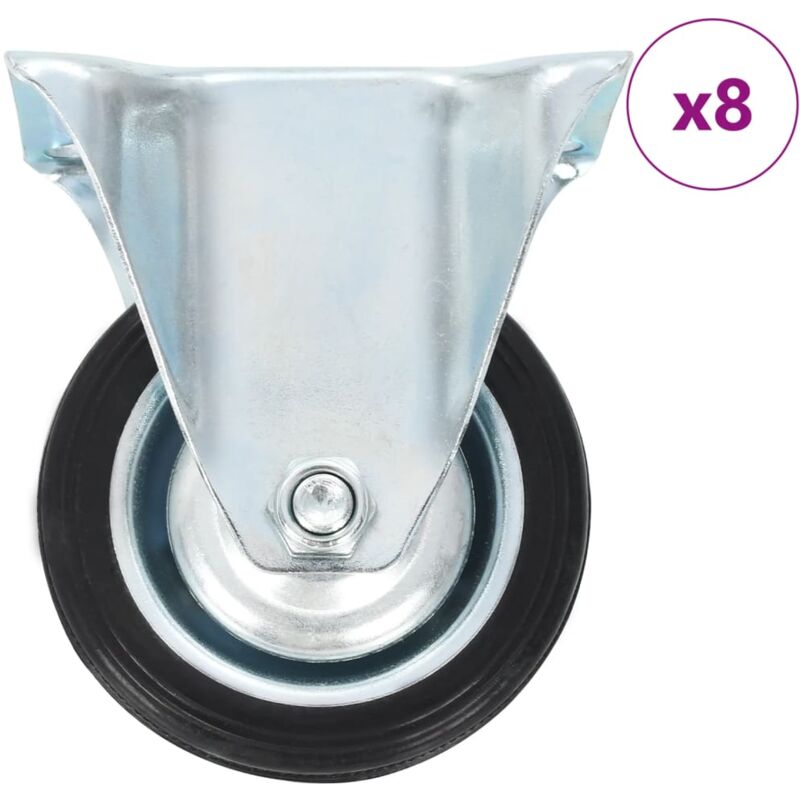 Questo set, composto da 8 rotelle fisse, costituisce l'accessorio perfetto per attrezzature e mobili di piccole dimensioni come banchi da lavoro, carrelli, tavolini da caffè, piantane, scaffali, carrelli della spesa, etc. Le ruote sono realizzate in gomma, un materiale che si distingue per una buona resistenza agli urti e alle vibrazioni e che consente alle ruote di girare in modo fluido e silenzioso. La loro superficie morbida, inoltre, protegge efficacemente il pavimento dai graffi. La struttura in ferro zincato è altamente resistente alla ruggine e garantisce maggiore robustezza e durata delle ruote. Ogni ruota è dotata di una capacità di carico massima di 50 kg. La consegna include 8 rotelle fisse. Colore: Nero Materiale: Gomma e ferro zincato Diametro della rotella: 75 mm Dimensioni piastra: 81 x 67 mm (L x P) Capacità di carico massima: 50 kg (singola ruota) La consegna include 8 rotelle fisse