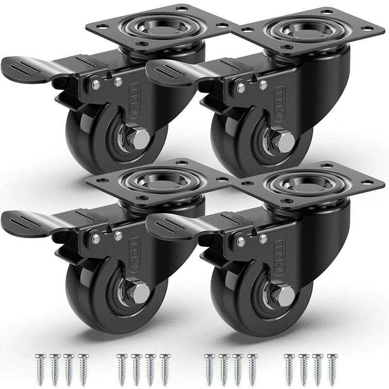 Risparmia energia e riduci lo sforzo sulla schiena: stai spingendo o trasportando i tuoi mobili? Sposta carichi pesanti, riduci lo stress sulla schiena e risparmia energia installando queste nuove rotelle. Impara a spostare i tuoi mobili con facilità e facilità. Ruote per mobili robuste e affidabili (set di 4): le rotelle sono realizzate con materiali di alta qualità e hanno un design robusto e stabile, che in effetti è il più resistente nella loro classe. La ruota girevole può ruotare in modo fluido e silenzioso di 360 gradi. Flessibilità e sicurezza: le robuste ruote in poliuretano (PU) combinano l'elasticità delle ruote in gomma con la robustezza e la durata delle ruote in metallo. Le ruote con freno sono adatte a tutti i tipi di pavimento. La capacità di carico è di 200 kg (50 kg per giro). Goditi un rotolamento fluido e silenzioso: le ruote hanno cuscinetti interni per un rotolamento fluido e la superficie liscia impedisce che capelli, detriti e sabbia si incastrino. Il set