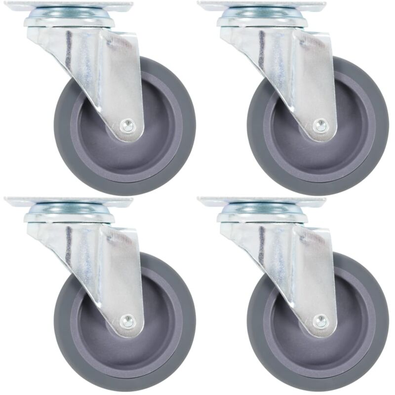 Questo set, composto da 4 rotelle girevoli, costituisce l'accessorio perfetto per attrezzature e mobili di piccole dimensioni come banchi da lavoro, carrelli, tavolini da caffè, piantane, scaffali, carrelli della spesa, etc. Le ruote sono realizzate in TPR (gomma termoplastica), un materiale caratterizzato da un'ottima resistenza agli urti e alle vibrazioni e che consente alle ruote di girare in modo fluido e silenzioso. La loro superficie morbida, inoltre, protegge efficacemente il pavimento dai graffi. La struttura in ferro zincato è altamente resistente alla ruggine e fornisce una maggiore robustezza e durata alle ruote. Ogni ruota possiede una capacità di carico massima di 45 kg. La consegna include 4 ruote girevoli. Colore: Grigio Materiale: TPR (gomma termoplastica) e ferro zincato Diametro della rotella: 75 mm Larghezza della ruota: 27 mm Dimensioni della piastra: 65 x 65 mm (L x P) Distanza del foro: 49 x 49 mm Altezza di costruzione: 92 mm Capacità di carico massima: 45 kg
