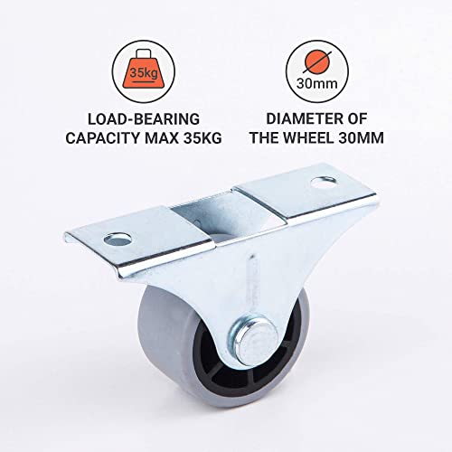Rotelle in gomma per mobili, ruote piccole, 30 mm, non girevoli, non in plastica, per elettrodomestici e attrezzature, ruote piccole, con viti incluse (8, Ø 30 mm/35 kg)