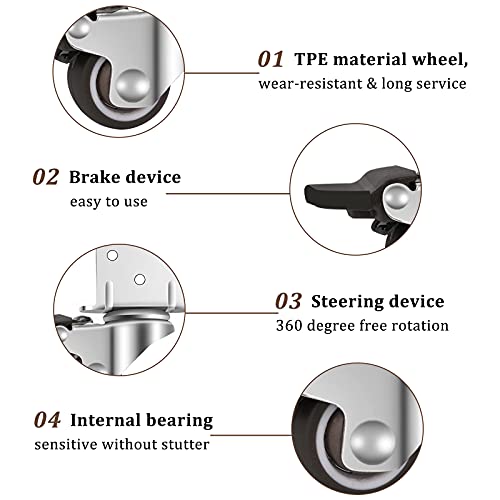 【Robuste e durevoli】Le nostre rotelle per mobili di piccole dimensioni sono dotate di una piastra di montaggio a forma di L, che le rende più robuste e facili da montare rispetto alle rotelle ordinarie. Inoltre, ogni ruota è dotata di cuscinetti a sfera di alta qualità e ha una capacità di carico totale di 44 kg (11 kg per ruota).