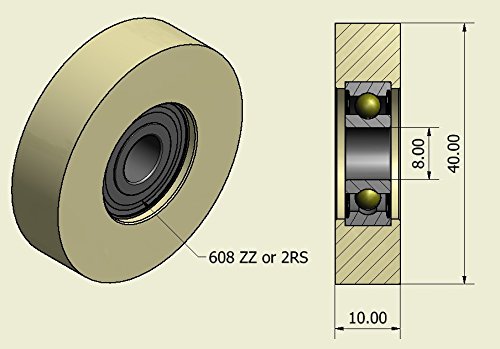 4 rotelle in nylon poliammide del diametro di 40 mm, larghezza di 10 mm, cuscinetto di 8 mm, realizzati in UE