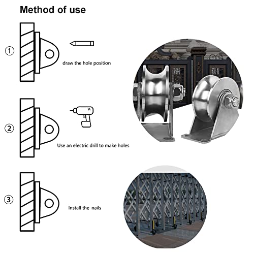 Rotelle Rigide per Cancello, Puleggia a U in Acciaio Inox, Carrucola per Sollevamento, Rullo per Cancello Scorrevole, Ruota in Acciaio per Scanalatura U