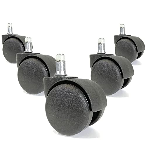 Rotelle per sedia da ufficio Ø 11x22 mm lunghezza penna - Ø 50 mm Ruote per moquette Set di 5 ruote Sedia nera con perno