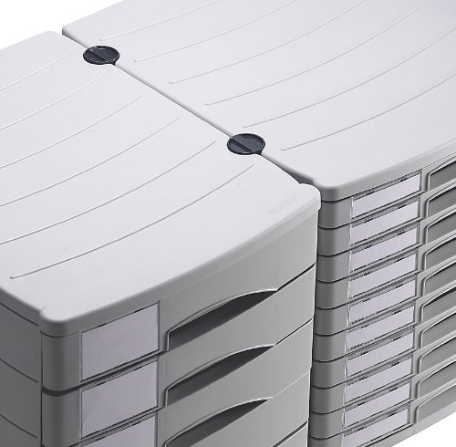 Rotho 1107406189 Cassettiera contenitore con cassetti per ufficio Profiline in materiale plastico (PS), 10 cassetti chiusi, formato A4, con etichette, ottima qualità, ca. 38.5 x 29.5 x 30.5 cm, grigio