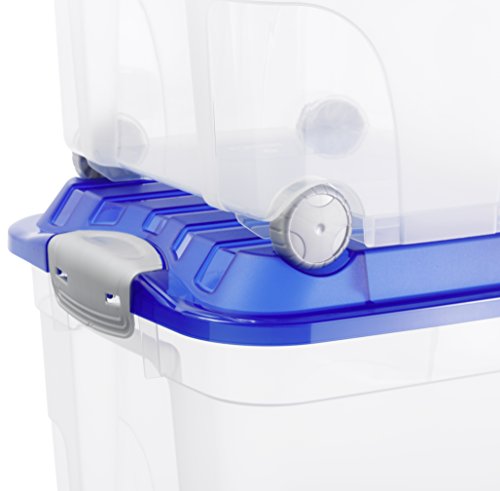 Rotho 1766606149 Contenitore Roller 6 in plastica PP, con Coperchio e 6 stabili Ruote, capacità Circa 57 l, Circa 59,5 x 40 x 37 cm, Trasparente/Blu