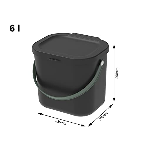 Rotho Albula Bidone Organico Coperchio per la Cucina, Plastica (PP Riciclato), Nero, 6l, Kunststoff recycelt, (23,5 x 20,0 x 20,8 cm)