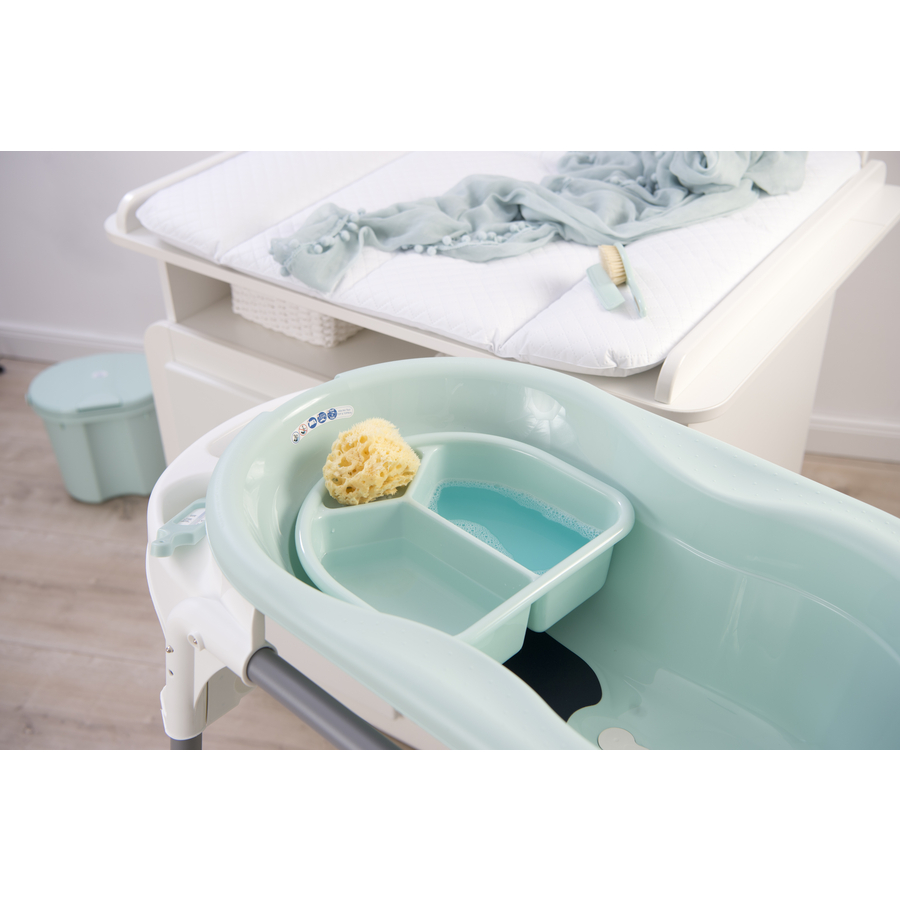 La bacinella per il lavaggio di Rotho Babydesign offre un'alternativa pratica e a risparmio di risorse per la cura della pelle delicata e sensibile di neonati e bambini. Convince per l'elevata funzionalità e il comfort grazie al design ergonomico con due scomparti e un ripiano utile per il sapone, le spugne o le salviette. Il materiale di alta qualità, testato per le sostanze chimiche, garantisce inoltre una lunga durata. Per avere tutto a portata di mano prima e durante il cambio del pannolino, uno degli scomparti può essere riempito con acqua e sapone e uno con acqua pulita. In questo modo non si è legati al lavandino durante il cambio si può posizionare la vaschetta di lavaggio direttamente sul fasciatoio. La bacinella può essere abbinata alla collezione di Rotho Babydesign, come il secchio per pannolini o il fasciatoio impermeabile. Insieme ad altri articoli, come il pettine e la spazzola, lo sgabello o il vasino, i vostri piccoli saranno accompagnati fino all'apprendimento della toilette. Soluzioni intelligenti per genitori e bambini - Il marchio tedesco Rotho Babydesign sviluppa prodotti innovativi e di alta qualità da oltre 15 anni ed è un nome affidabile nel campo della cura dei bambini e dei neonati. Dettagli del prodotto: Pratica bacinella a due scomparti Ripiano per il sapone Design ergonomico per il lavaggio tra il bagnetto e il cambio pannolino Alternativa alle salviettine per risparmiare risorse Dettagli tecnici: Design: Swedish Green Dimensioni: lunghezza x larghezza x altezza: 30 x 28 x 10 cm Materiale: Polipropilene Plastica