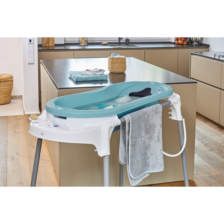 Dettagli del prodotto: Colore: laguna Per bambini da 0 a 36 mesi Forma ergonomica e generosa con 105 cm di lunghezza per un utilizzo più prolungato Vaschetta: ideale per bambini grandi, fratelli o gemelli Le dimensioni maggiori consentono un utilizzo più prolungato durante il bagnetto Inserto per il bagnetto: ideale per le prime settimane Forma anatomica e sicura per un comodo bagnetto del bambino Facile da appendere e da fissare alla base del bagnetto con una ventosa Due tappetini antiscivolo per una migliore presa durante il bagnetto Funzionale supporto per il bagno: regolabile in altezza per facilitare il bagno alla schiena I ripiani laterali integrati consentono di tenere a portata di mano gli utensili più importanti Pratico porta asciugamani Tappo di scarico per un facile svuotamento Comodo bracciolo per i genitori grazie all'ampio bordo Pratiche maniglie per il trasporto Facile svuotamento della vasca da bagno con scarico dell'acqua in un secchio o in una bacinella da bagno/doccia Cura e pulizia con acqua calda e sapone Tubo di scarico adatto a tutte le vaschette per bambini Rotho Inserto per vasca da bagno per le serie TOP e TOP Xtra Certificato secondo la norma UE DIN EN 17072 Istruzioni per l'usoStazione per il bagno Istruzioni per l'uso vasche da bagno e rivestimenti per vasche da bagno Materiale e dimensioni: Dimensioni (lunghezza x larghezza x altezza): Vasca 105 x 47,5 21,5 cm Materiale: plastica di polipropilene L'altezza del supporto è variabile: 980 x 1020 mm Istruzioni per la conservazione e la cura: Pulire con acqua calda e sapone Avvertenza: l'ausilio per il bagno può essere utilizzato fino a quando il bambino non è in grado di sedersi senza sostegno, mentre la vasca da bagno può essere utilizzata solo sul supporto fino a quando il bambino non tenta di alzarsi in piedi autonomamente La fornitura comprende Vasca da bagno TOP Xtra Inserto per vasca TOP Xtra Supporto funzionale per vasca TOP Xtra Tubo di scarico Età e peso consigliati Sul supporto al
