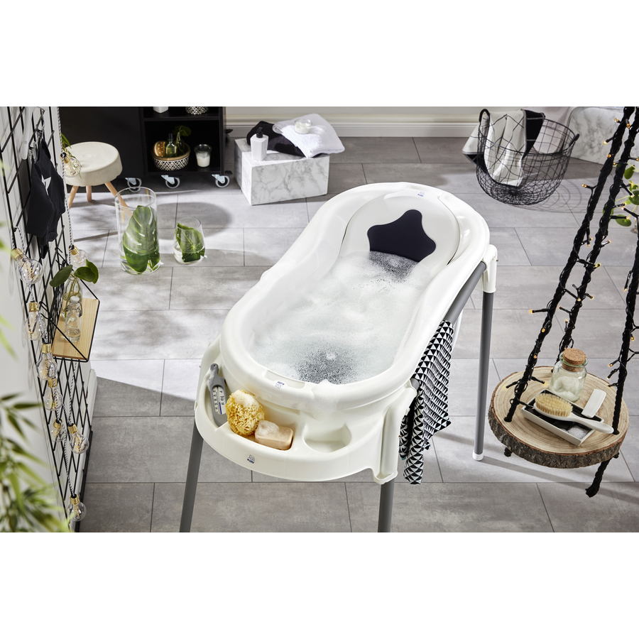 Con questa fantastica vasca il bagnetto sarà ancora più confortevole. Studi e ricerche hanno portato alla realizzazione di una vasca Top sicura ed ergonomica. Rispetta le norme di sicurezza. Garantisce un bagnetto comodo e pratico non solo ai bambini, ma anche ai genitori. Dettagli del prodotto: Lunghezza 105 cm Ideale per fratellini o gemelli Più spazio per il bagnetto Antiscivolo Spazio per il sapone e la spugna Con tappo di scarico per svuotarla facilmente Con bordi larghi per la comodità dei genitori Con pratici manici Materiale: polipropilene Pulizia: con acqua calda e sapone neutro Rotho Inserto Top: Specifico per le vaschette Top e Top Xtra Anatomico e confortevole per i neonati Tenuta sicura del bambino Anti-scivolo Si fissa alla vasca con una ventosa ROTHO Termomentro da bagno digitale Papera Indicatore LED luce rossa quando la termperatura è troppo elevata Per acqua e ambiente Ideale anche per giocare Pile incluse