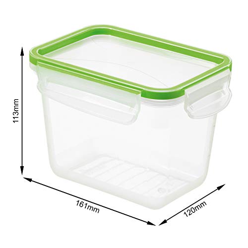 Rotho Clic & Lock Lattina di Cibo Fresco con Coperchio e Sigillo, Plastica (PP) senza BPA, Trasparente/Verde, 1 L, 16.1 x 12.0 x 11.3 cm