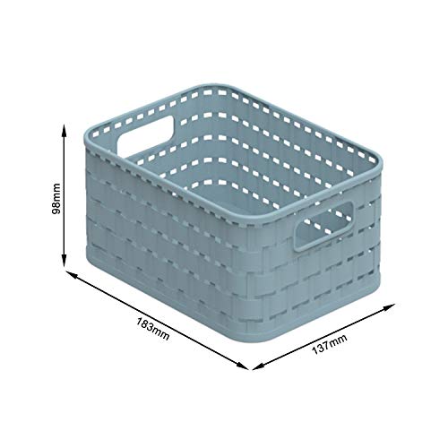 Rotho Country Cestino di Stoccaggio in Rattan-Look, Plastica (PP Riciclato) senza BPA, Blu, A6/2 L, 18.3 x 13.7 x 9.8 cm