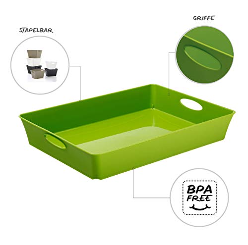 Rotho Living Grande vassoio di stoccaggio/vassoio 4.5l, Plastica PP senza BPA, Verde, C4/DIN A4/4.5l 37.5 x 27.0 x 6.0 cm