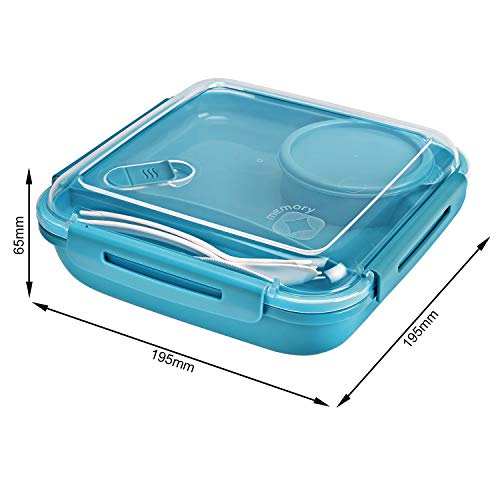 Rotho Memory B3 Lunchbox con Posate e Contenitore Separato, Plastica (PP) senza BPA, Blu, 1.1 L, 19.5 x 19.5 x 6.5 cm
