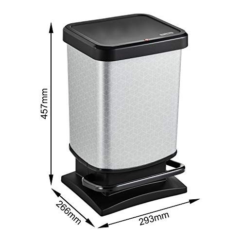 Rotho Paso Portarifiuti 20l con pedale e coperchio, Plastica PP senza BPA, Grigio Hexagon, 20 l 29.3 x 26.6 x 45.7 cm
