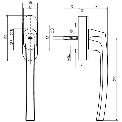 Roto Maniglia Line Patio Z con logo, argento naturale, lunghezza perno 35 mm