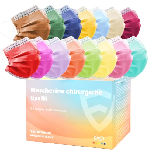 Rotoform 150 Pezzi Mascherine Chirurgiche Colorate, Mascherine Chirurgiche MADE IN ITALY a 3 Strati Certificato CE Tipo IIR, Idrorepellente,Alta Qualità Filtrante,Protezione Facciale E Respiratoria
